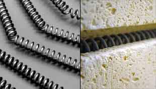 Wire(s) in the walls, lid and (occasionally) floor of a kiln that produce heat. They are typically cold (like a very long spring) to maximum the length and and produce maximum heat.